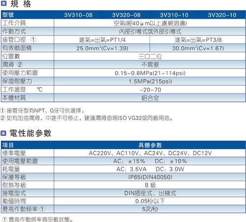 AirTAC亞德客3V300系列電磁閥參數(shù):